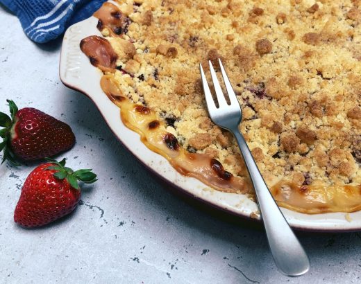 13Apr.Erdbeer-Rhabarber-StreuselkuchenGefühlt kann man sich gerade mit Rhabarber für das ganze Jahr eindecken, die SUpermärkte hier