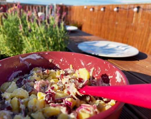 17JuliKartoffelsalat mit Ziegenkäse & TraubenDen hier hab ich auf einem Firmen-Event vom Mann gegessen und mich neu verliebt. Kartoffelsalat