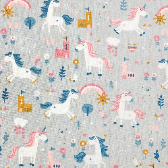 Mund-Nase-Maske – Grau mit bunten Einhörnern