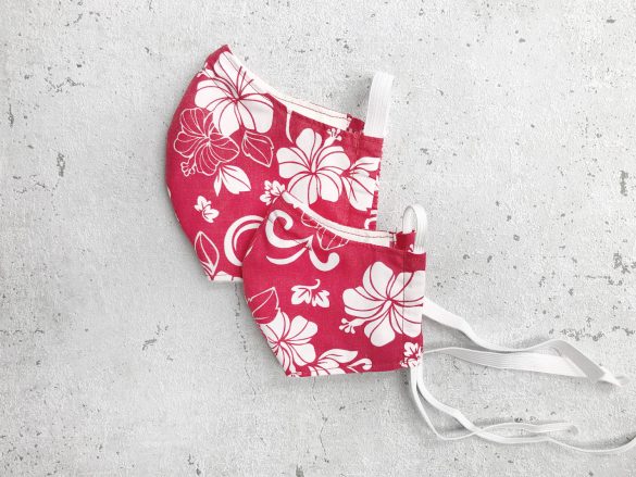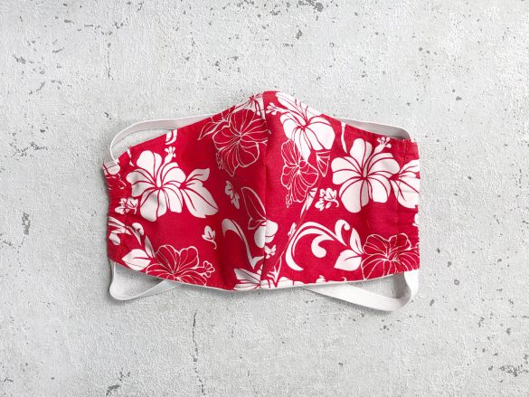 Mund-Nase-Maske – Rot mit weißen Blüten